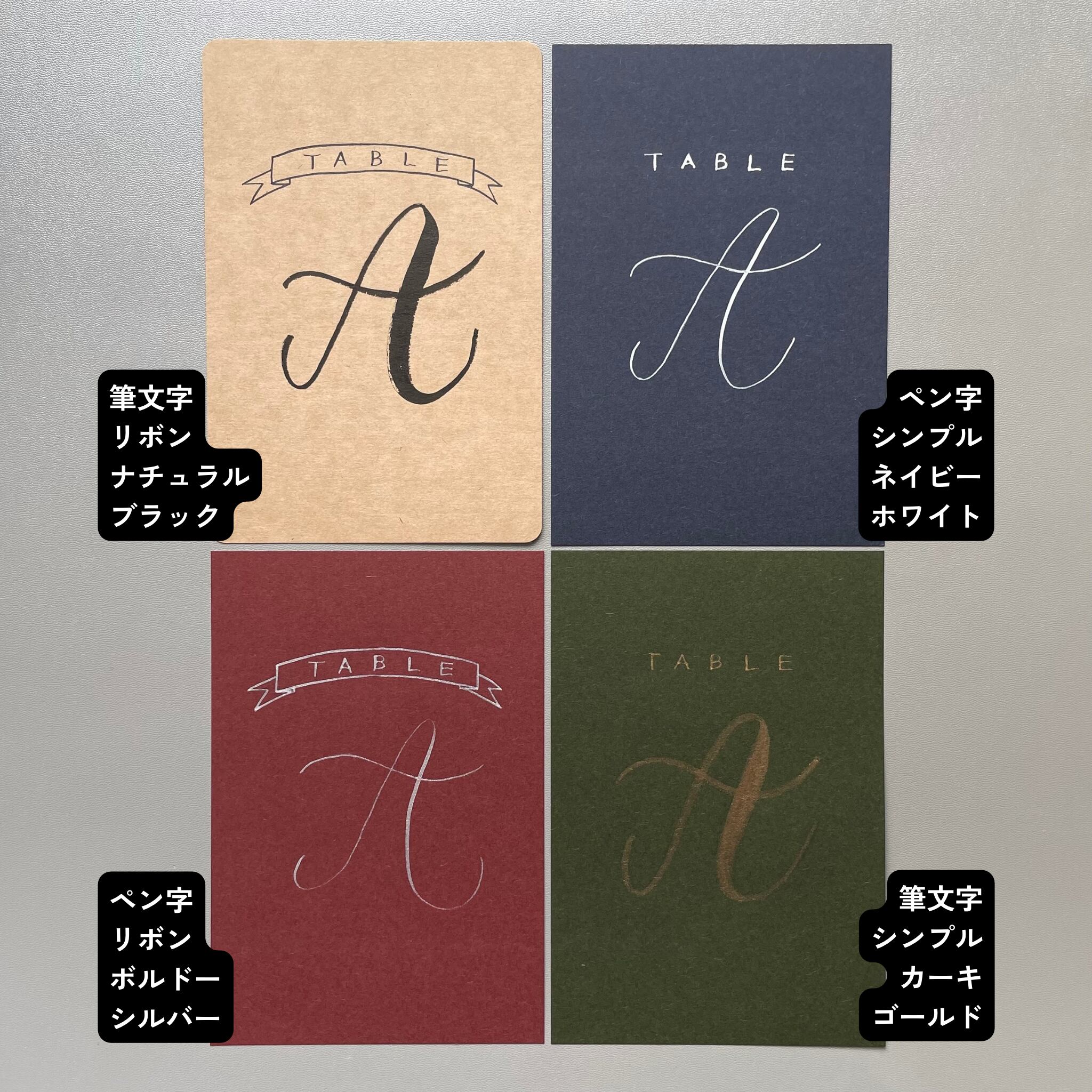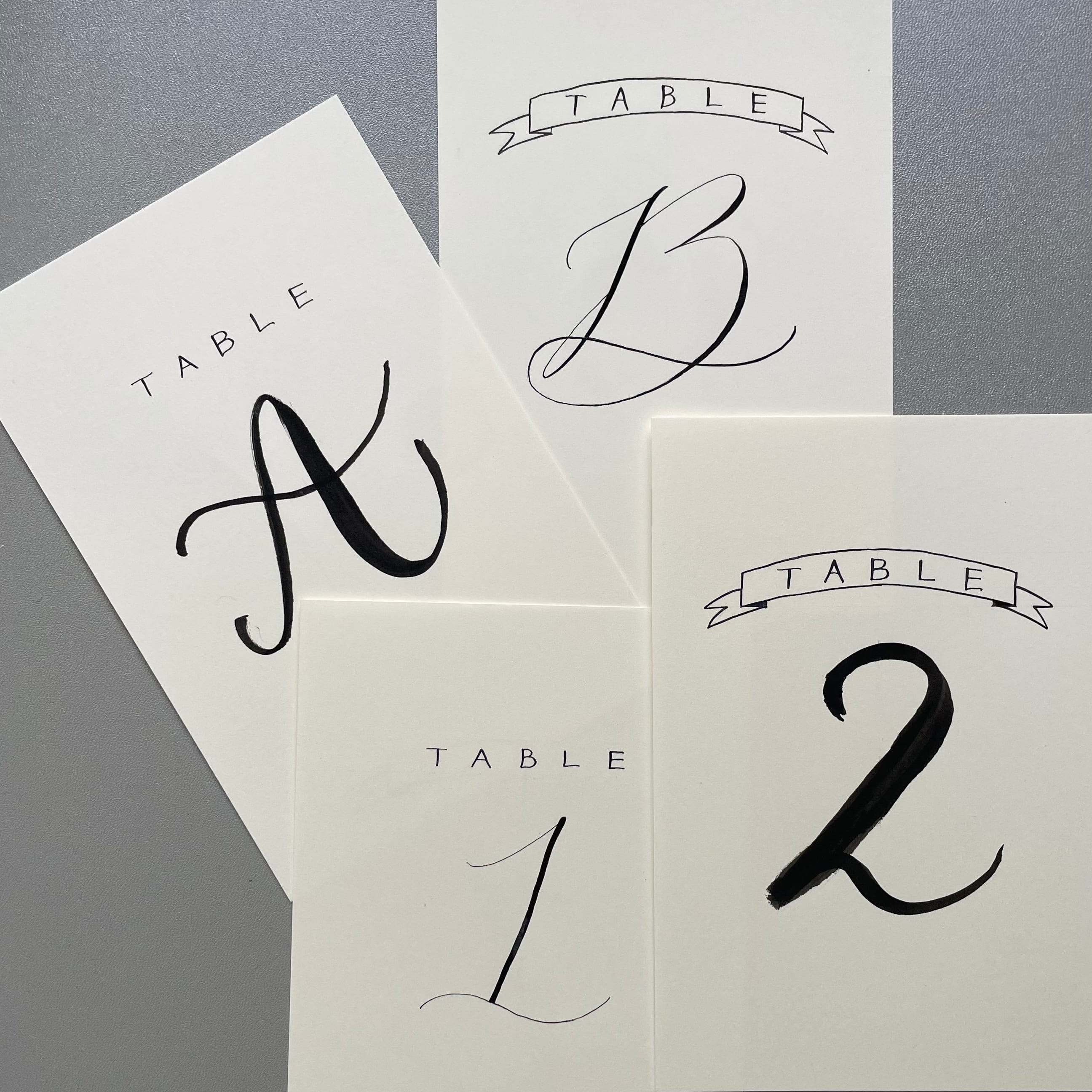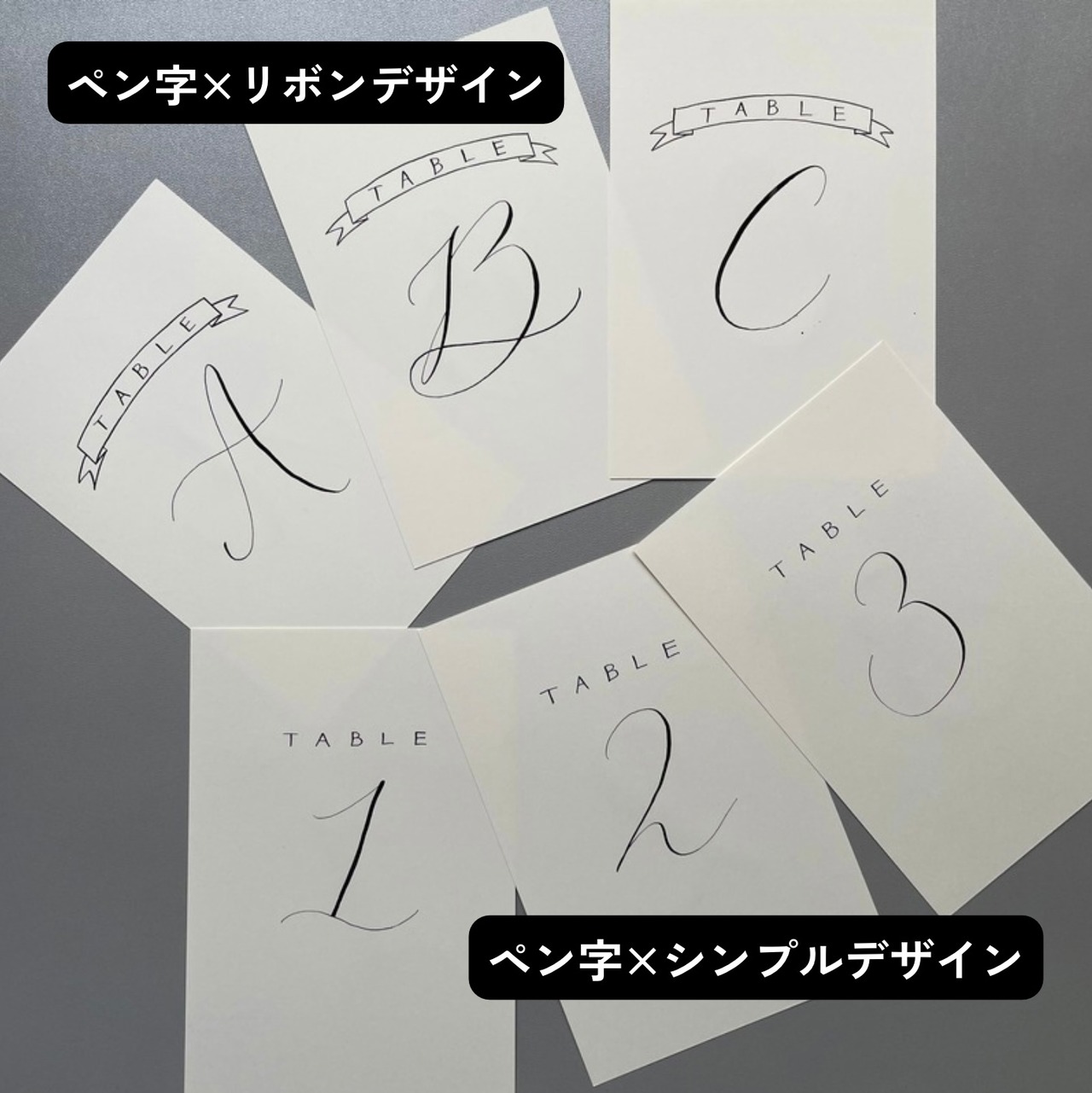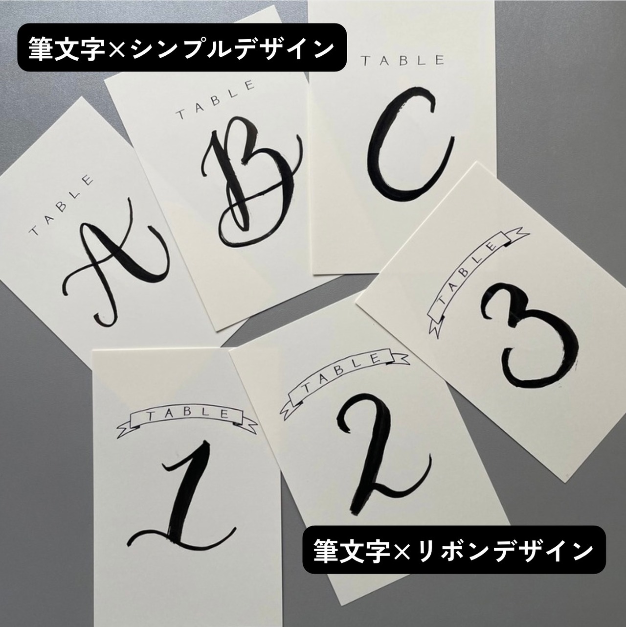 モダンカリグラフィーで製作した手書きのテーブルサインです。耐水性のインクを使用しているため、パーティーシーンでも安心です。ブランドや会社のレセプション等、ウェディング以外の用途でもお使いいただけます。