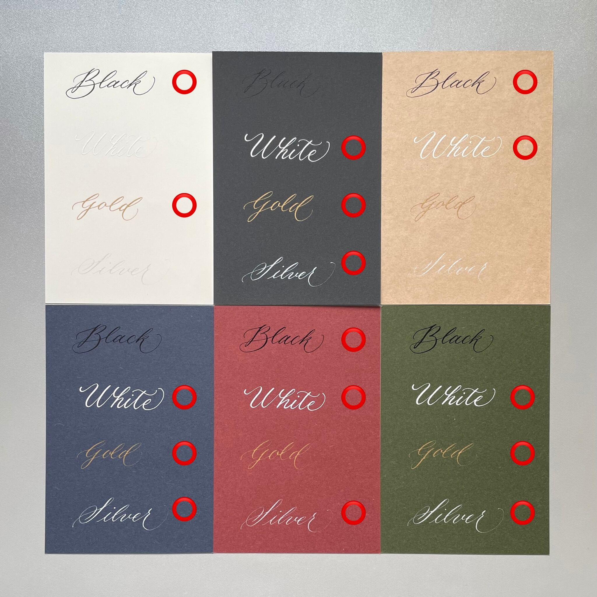 ※こちらに掲載している紙やインク以外にも、お好きな色味で作成が可能です。お手持ちのカードを当方宛にお送りいただいての作成も承ります(送料はご負担ください)。101枚以上のご注文も可能です。それぞれ専用ページをお作りしますので、メッセージ機能または「CONTACT」ページよりお気軽にご相談くださいませ。