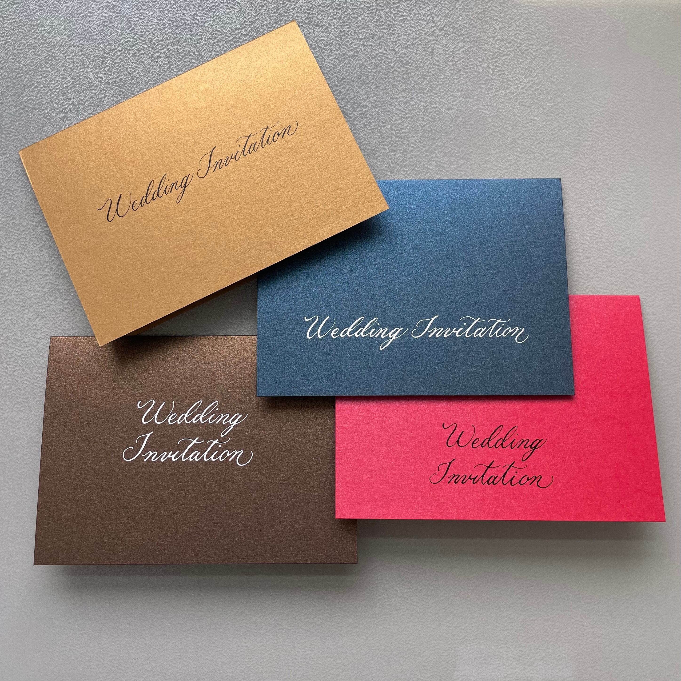 ※こちらに掲載している紙やインク以外にも、お好きな色味で作成が可能です。画像9・10枚目のように、お二人のお名前や日付、イニシャル等のデザイン変更も承ります。101枚以上のご注文も可能です。それぞれ専用ページをお作りしますので、「CONTACT」ページよりお気軽にご相談くださいませ。
