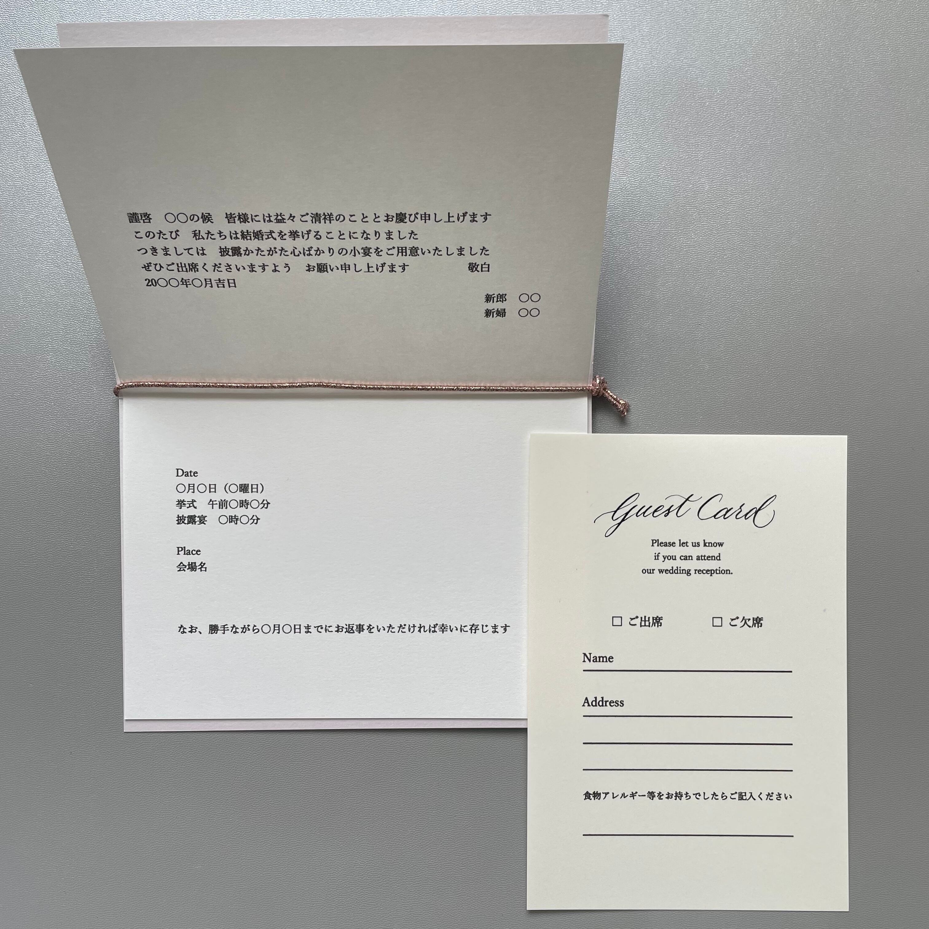 中紙や返信ハガキも合わせて作成いたします(付箋や地図等はご自身でご用意ください)。
