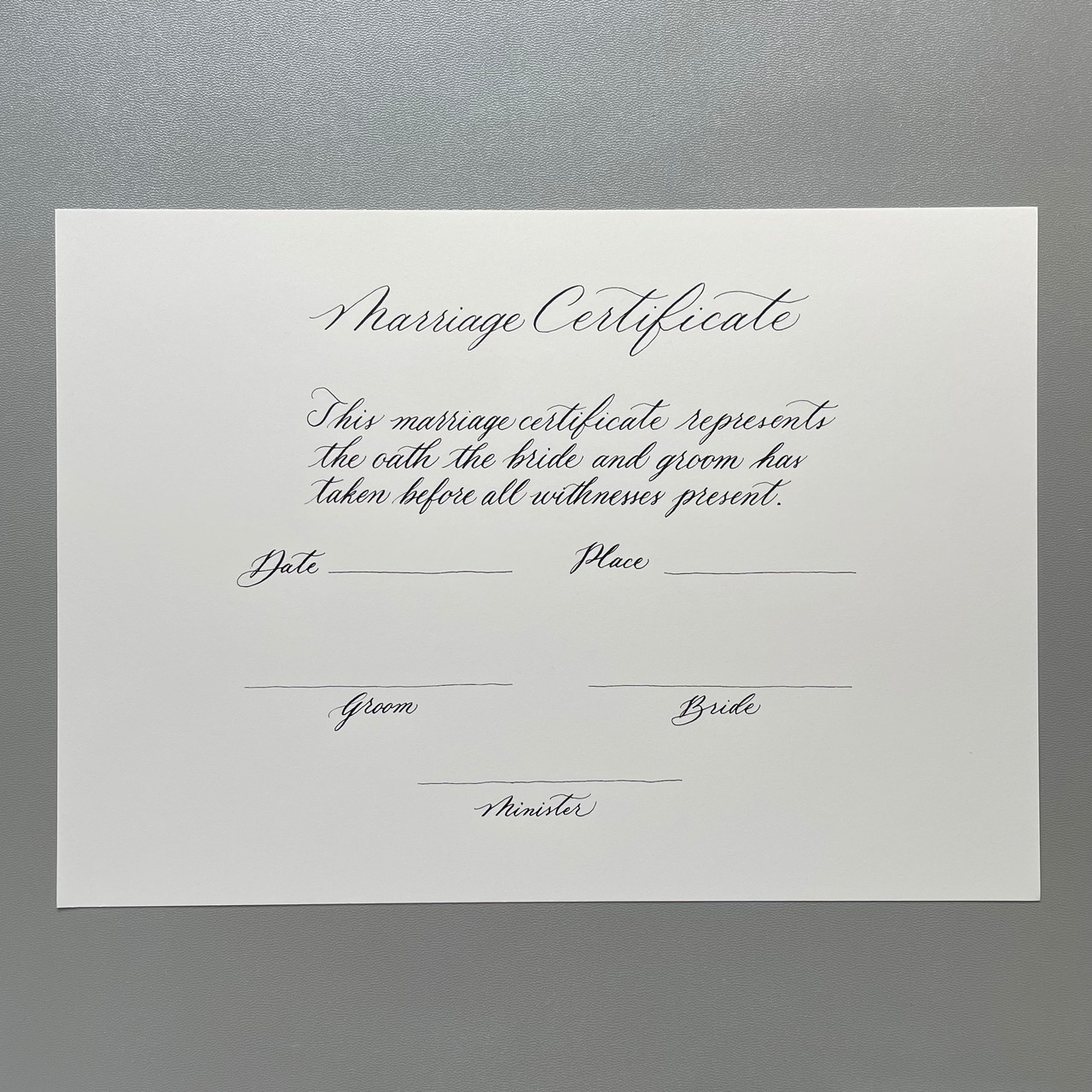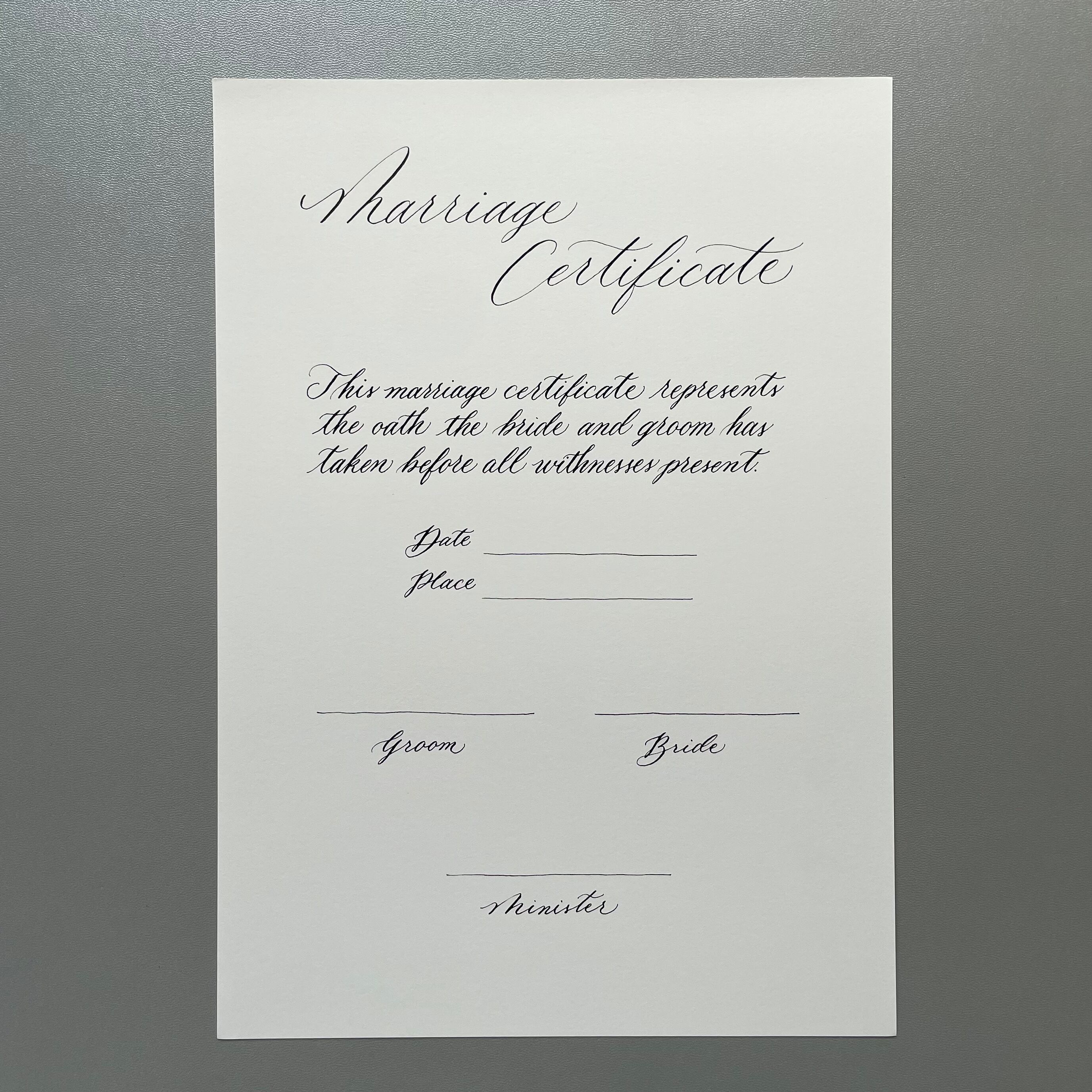 モダンカリグラフィーで作成した結婚証明書です。