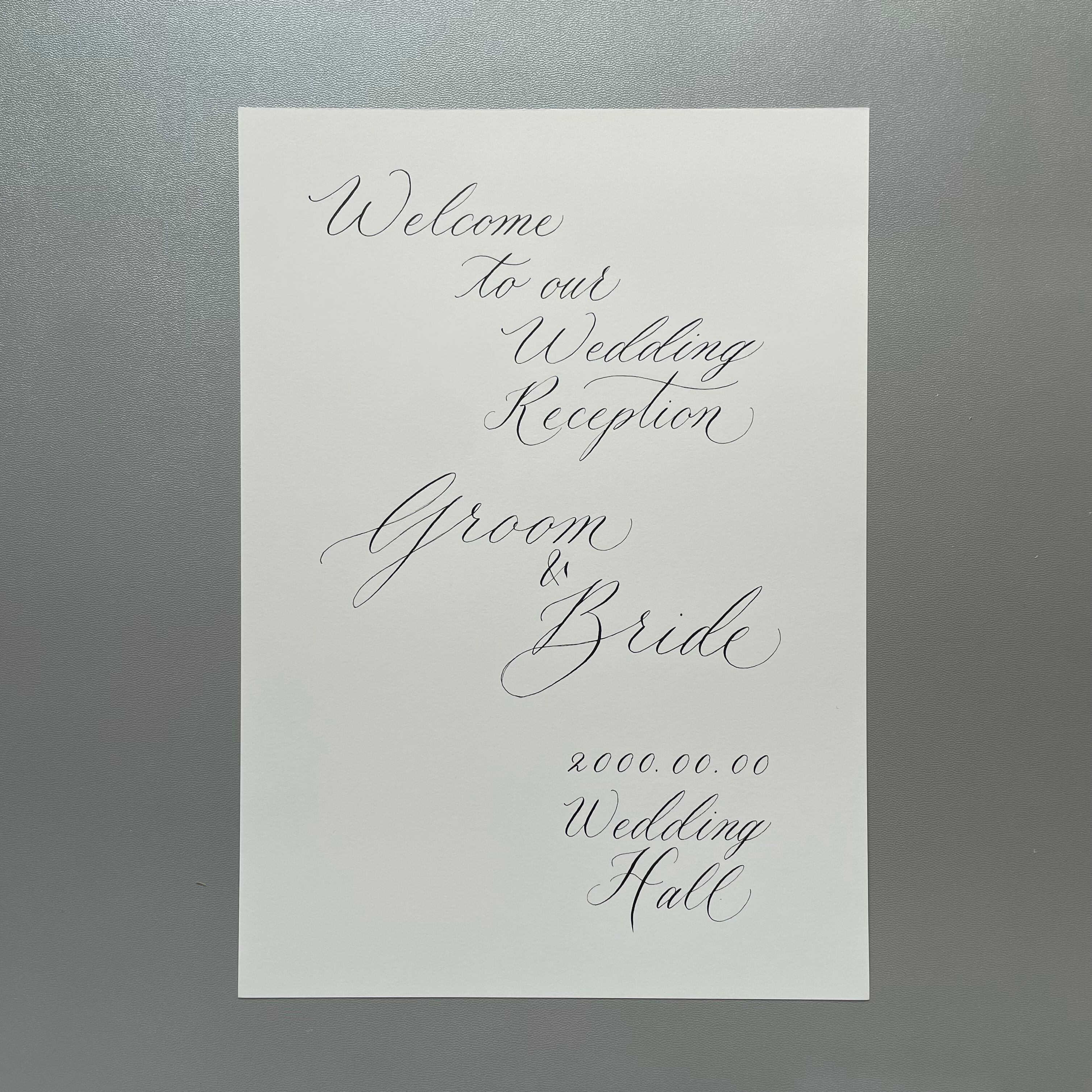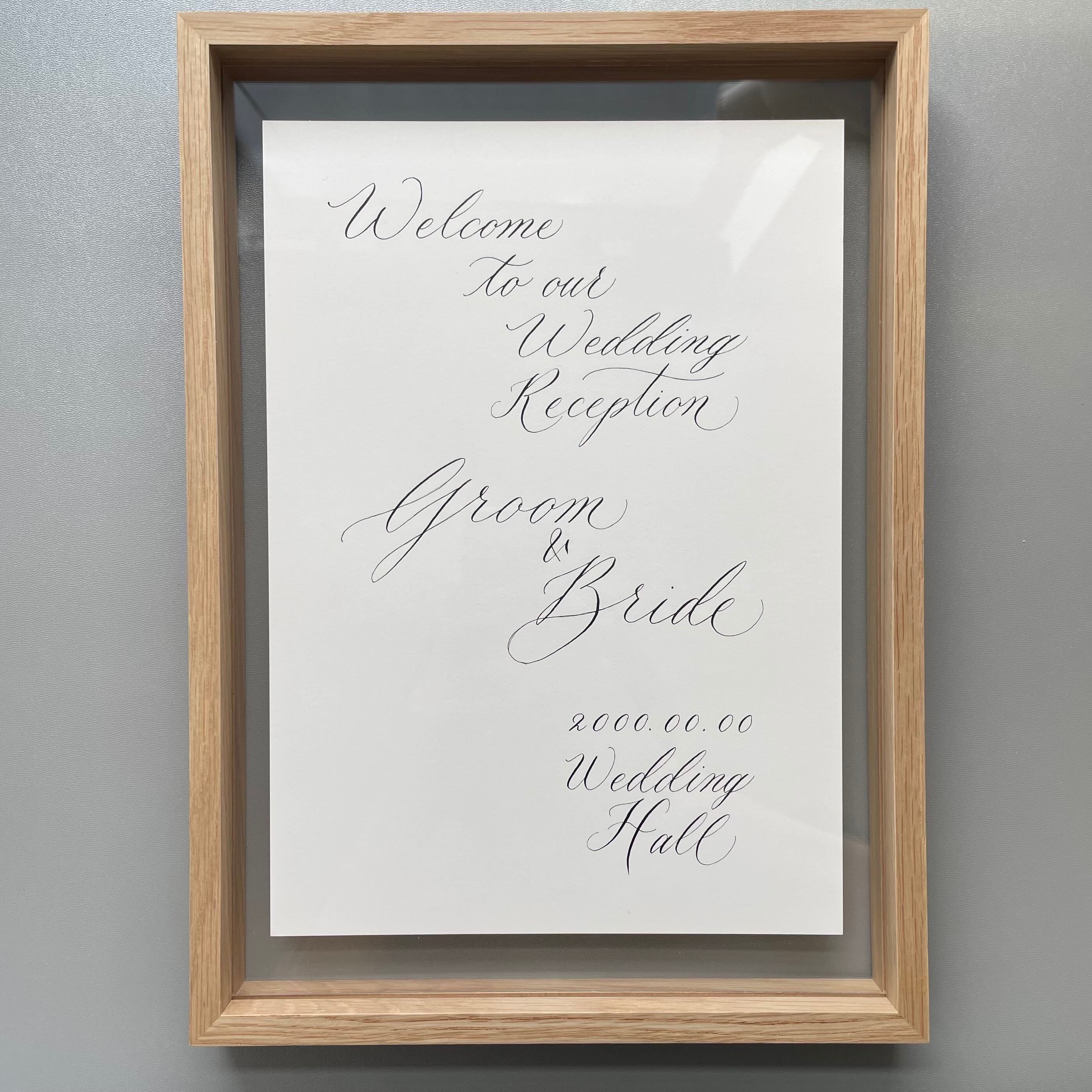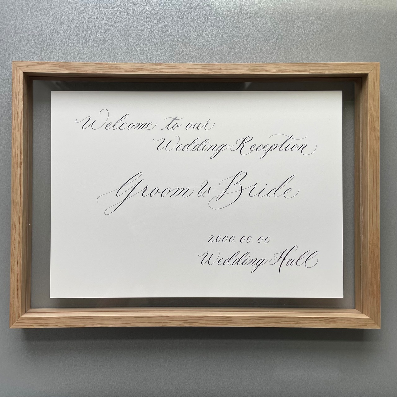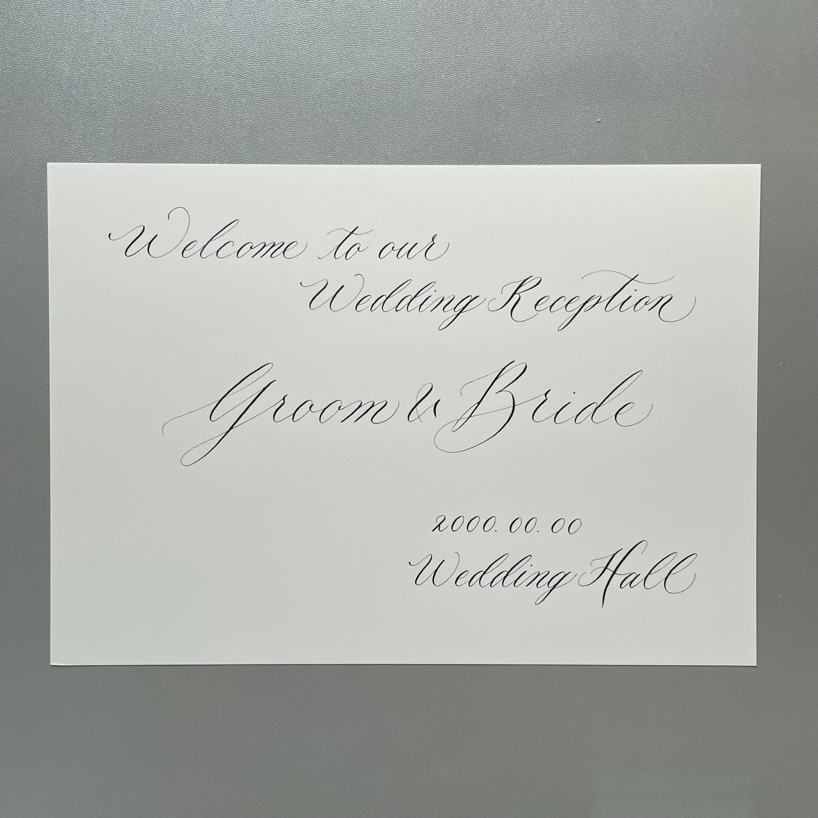 「Groom」には新郎様のお名前、「Bride」には新婦様のお名前、「2000.00.00」には日付、「Wedding Hall」には会場名をお入れします。