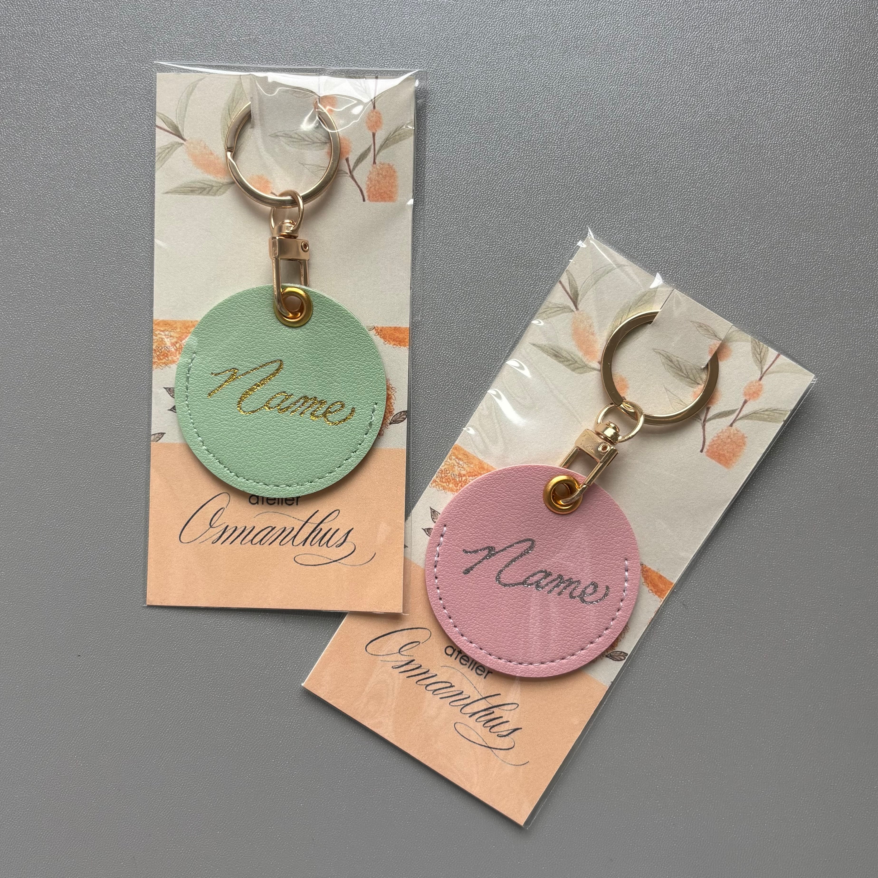モダンカリグラフィーで名入れしたキーホルダーです。