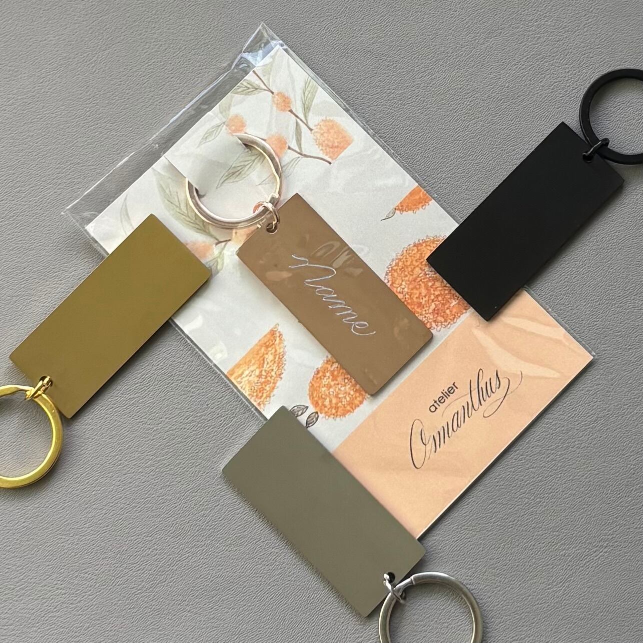 モダンカリグラフィーで名入れしたキーホルダーです。
