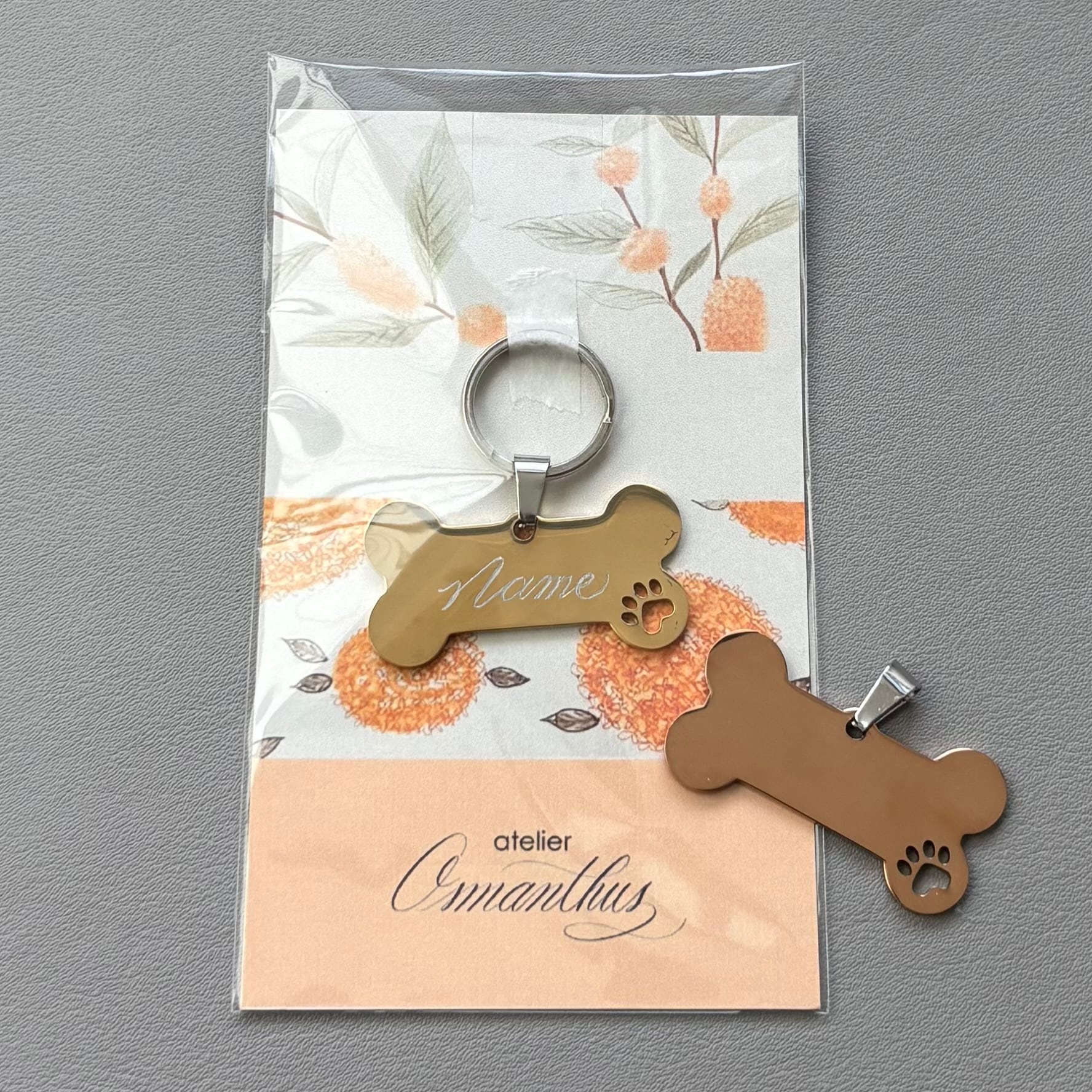 裏面の内容(特にご希望がなければお名前のイニシャルをお入れします)や名入れの位置、文字の向きもご自由にお選びいただけますので、ご希望があればお知らせください。
